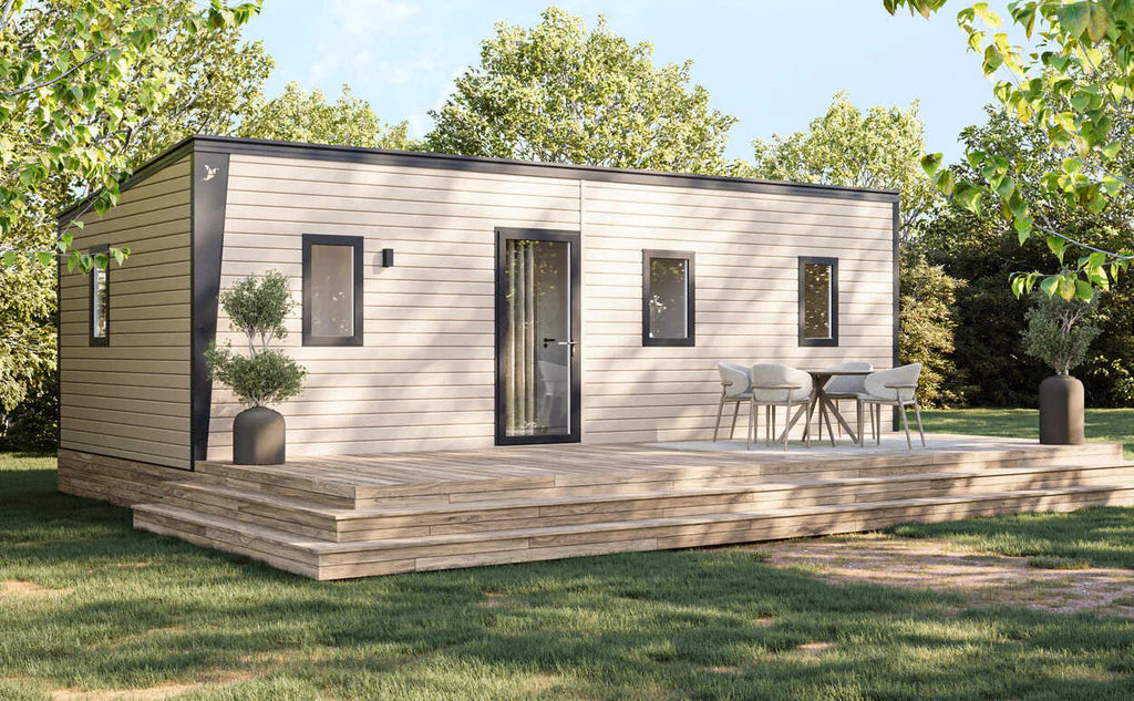 La Casa Móvil COPEL combina amplitud y practicidad: 2 dormitorios, 2 baños con ducha, cocina equipada con lavavajillas, además de calefacción eléctrica y calentador a gas. Su acabado en PVC efecto madera y el aislamiento 4 estaciones aseguran elegancia, durabilidad y confort en cualquier época del año.
