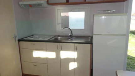 Incluye aislamiento térmico y acústico, ventanas de doble acristalamiento, conexiones de agua, electricidad y gas listas para usar, y sistemas de calefacción y agua caliente eficientes. La casa móvil T3 Titiana es ideal tanto para residencia permanente como para uso vacacional.